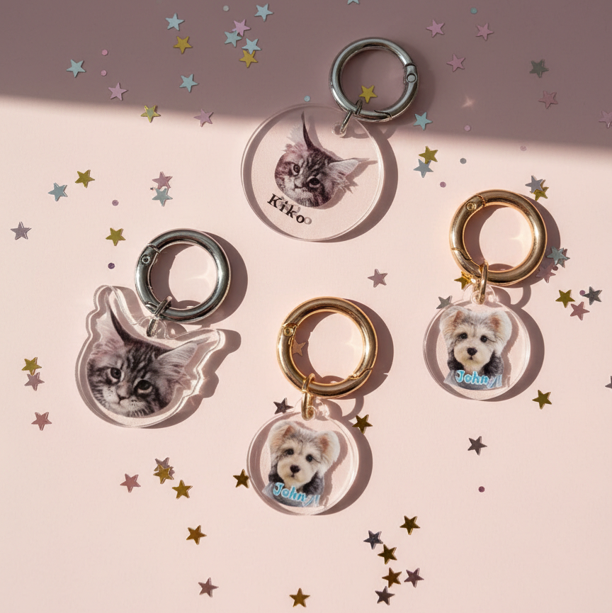 Keep your pet safe in style with our custom photo ID tag. Perfect for daily walks, travel, park adventures, or indoor safety—this personalized tag with your pet's photo and contact info adds heartfelt protection to every moment. ✨ What you get: custom photo ID tag with engraving • Double-layer acrylic protection • Ultra-lightweight (5.7g) • Scratch and fade-proof.